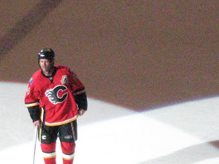 As we watched the Flames warm up on Sat night, I noticed the fans draping jerseys and hats over the tunnel for players to sign as the left the ice. Iginla was the first off and just walked by everyone. More players did the same until Conroy. He stopped and signed all the items draped over. What a super guy... I did notice no ushers at the entrance to lower level. So it appears like people rush down there early, wait hoping to get something signed and then move to their proper seats. He played really well and took home second star of the game. This guy is 37 years old but is such a leader and great role model for younger players. Keep him in Calgary.