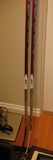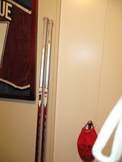 Jay Bouwmeester Game Used Stick. This is beside the Pardy stick, both guys must be tall, scary....